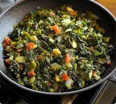 Flavorful callaloo sautéed with salted cod, onions, and spices for a true island taste.